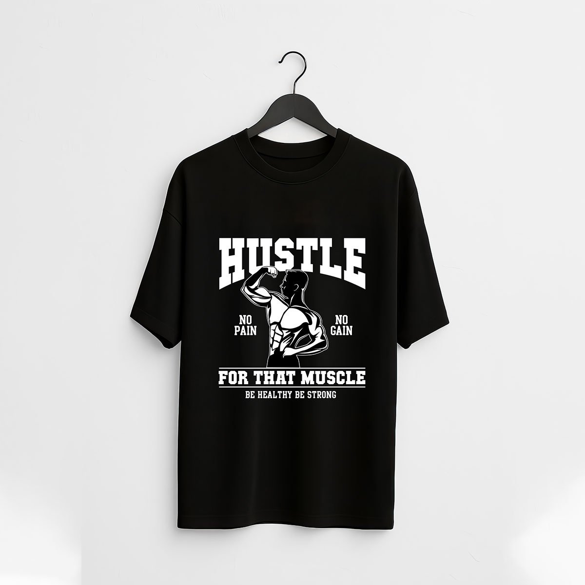 Fuel your fitness journey with the “Hustle For That Muscle” gym t-shirt – the perfect companion for intense workouts and relentless hustle. Featuring a bold bodybuilder graphic and the iconic slogan No Pain, No Gain, this tee inspires strength and stamina. Crafted from soft yet durable cotton lycra, it ensures maximum comfort, breathability, and stretch for your toughest training sessions. Ideal for gym rats, athletes, and anyone who lives to lift.